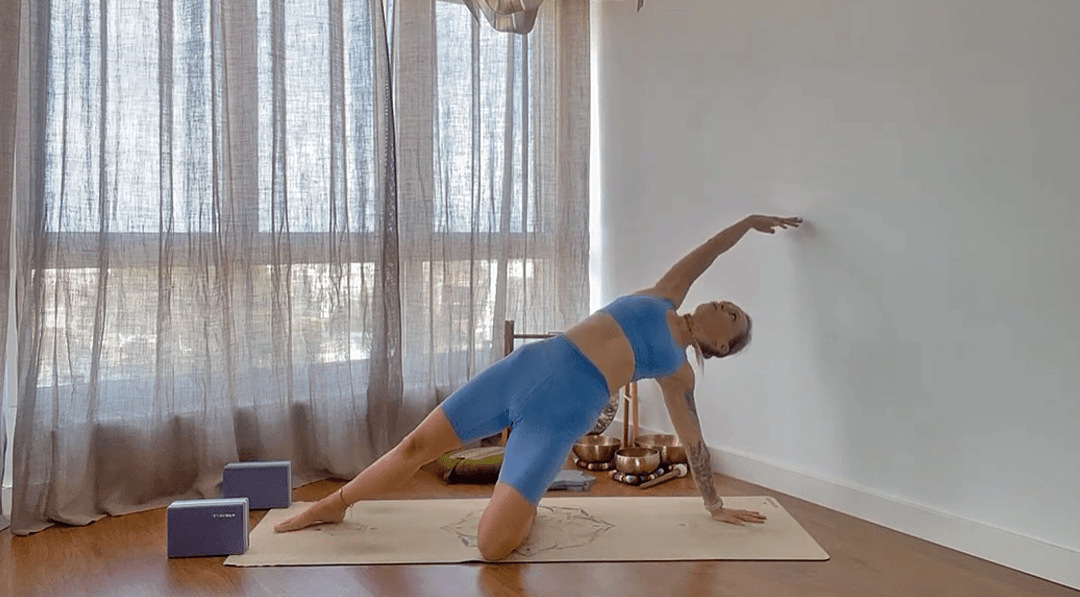 Praktyka vinyasy inspirowana żywiołem wody. Woda zamraża, rozpuszcza, oczyszcza i płynie swoim nurtem. W niej spędzamy pierwsze miesiące życia. Płynąca woda wydaje się miękka i pełna wdzięku, ale ma też moc rzeźbienia kanionów. My również jesteśmy zbudowani z wody. Około 60% do 70% ciała to woda. Dlatego dziś spróbujemy się połączyć z tym aspektem naszej fizyczności podczas praktyki. Nie musisz mieć żadnych pomocy, ale może uznasz za przydatne na przykład bloki do jogi.